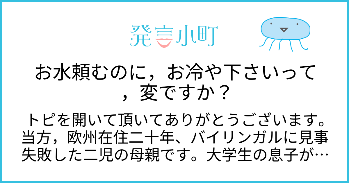 お水頼むのに,お冷や下さいって,変ですか? | 生活・身近な話題 | 発言小町